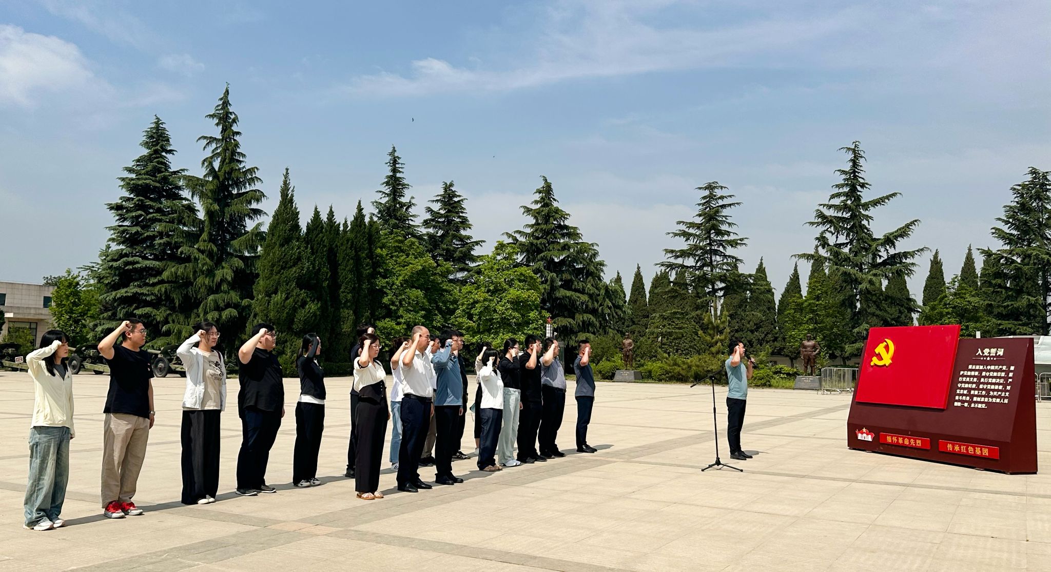 在庄严肃穆的扶眉战役烈士纪念碑前,全体党员整齐列队肃立致敬,向烈士敬献花篮,深切追思为革命事业英勇献身的革命先烈。面向鲜红党旗,全体党员重温入党誓词,重温铮铮誓言。